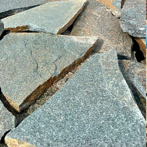 Златолит — натуральный камень с выразительной слоистой фактурой и природными оттенками от золотистого до серо-зелёного. Материал прочный, морозостойкий и устойчивый к влаге, поэтому подходит для строительства, облицовки и ландшафтного дизайна.