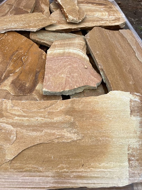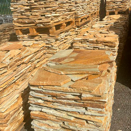 Златолит поставляется в виде плитняка и колотого камня различной толщины. Материал удобно укладывать, он хорошо сочетается с деревом и другими натуральными покрытиями и подходит для проектов в классическом и современном стиле.